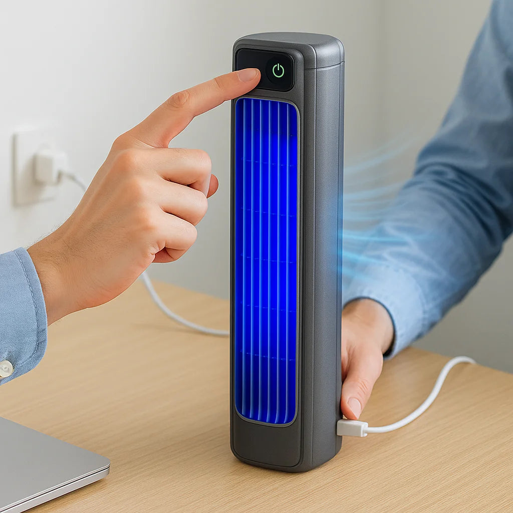<<As a parent, safety is my top priority, and the Cooling Ace meets those needs. The bladeless design is perfect for my toddler and cools our living room quickly. It’s light enough to move between rooms, and the air feels much cleaner. I love that it’s quiet during nap time. A must-have for families in the summer.>>